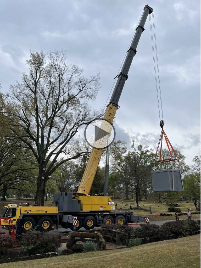 Memphis-based Barnhart, known for its expertise in lifting heavy components and equipment, recently faced a spine-chilling challenge at the Memorial Park Funeral Home and Cemetery in Memphis. This time, it wasn’t just about moving equipment. Barnhart’s eerie endeavor involved transporting and lifting a brand-new, custom-made mausoleum from a truck to its designated grave site.