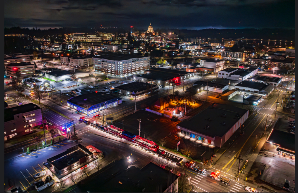 The team worked with city, state and county authorities to map out a 45-mile route through the I-5 Corridor to Centralia, WA. Although there were initial concerns about leaving the Port of Olympia, Barnhart’s Los Angeles team developed a solution. They backed the trailer out of the port nearly 1.5 miles, removed a single tree and worked through a residential area to reach I-5. The LA team completed all four round-trip moves in less than a month without any incidents, first-aids or recordable injuries.