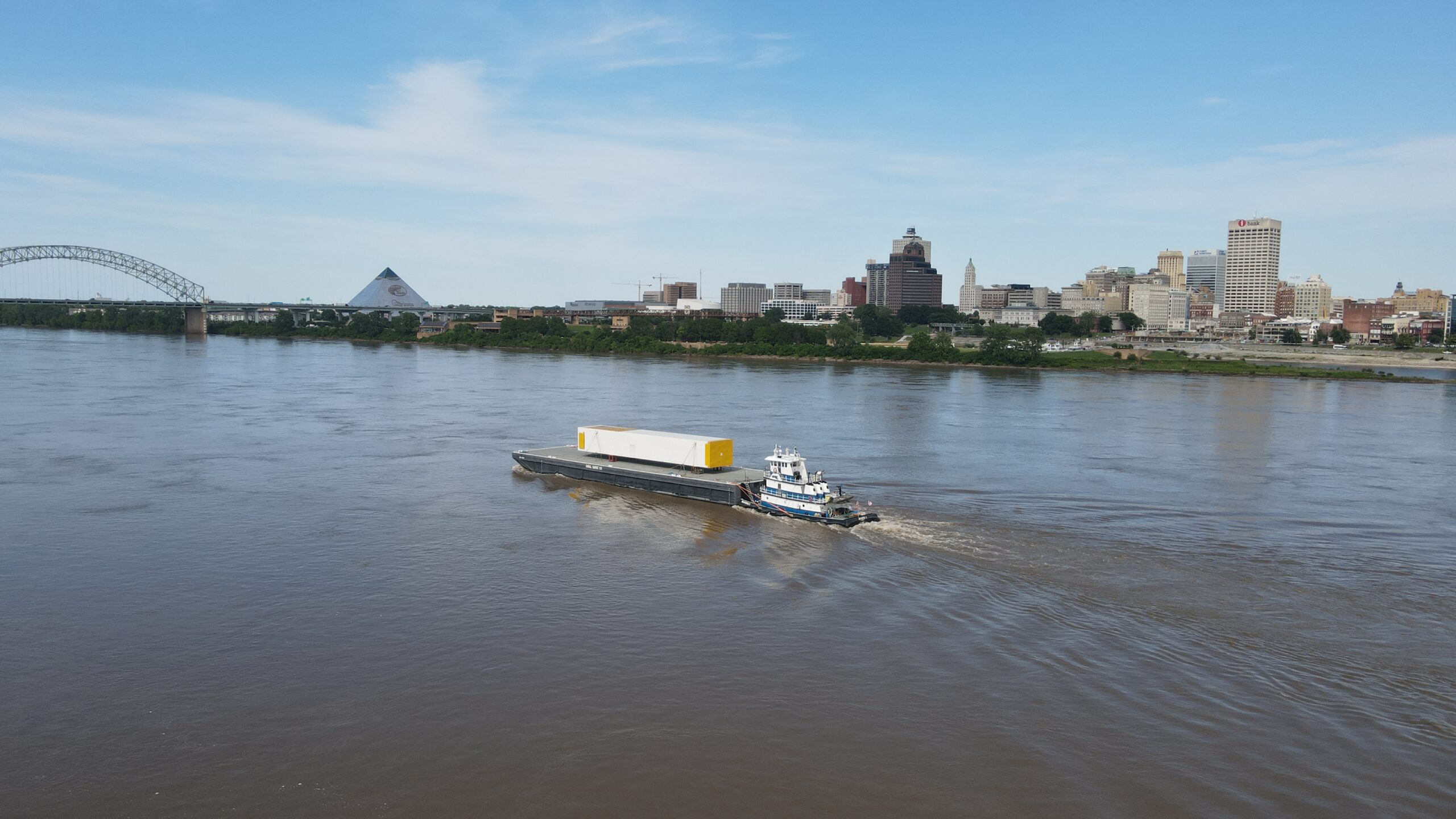 To avoid Frost Laws, construction zones and spring road restrictions, Barnhart proposed a change order to barge the largest cold box up the Mississippi River to Minneapolis. This cut 1,600 miles of over-the-road transit from the trip. However, our preferred roll-off locations in Minneapolis were unsuitable, requiring a pivot to a new site at Alter River Terminal in St. Paul. There, the team executed the roll-off flawlessly.