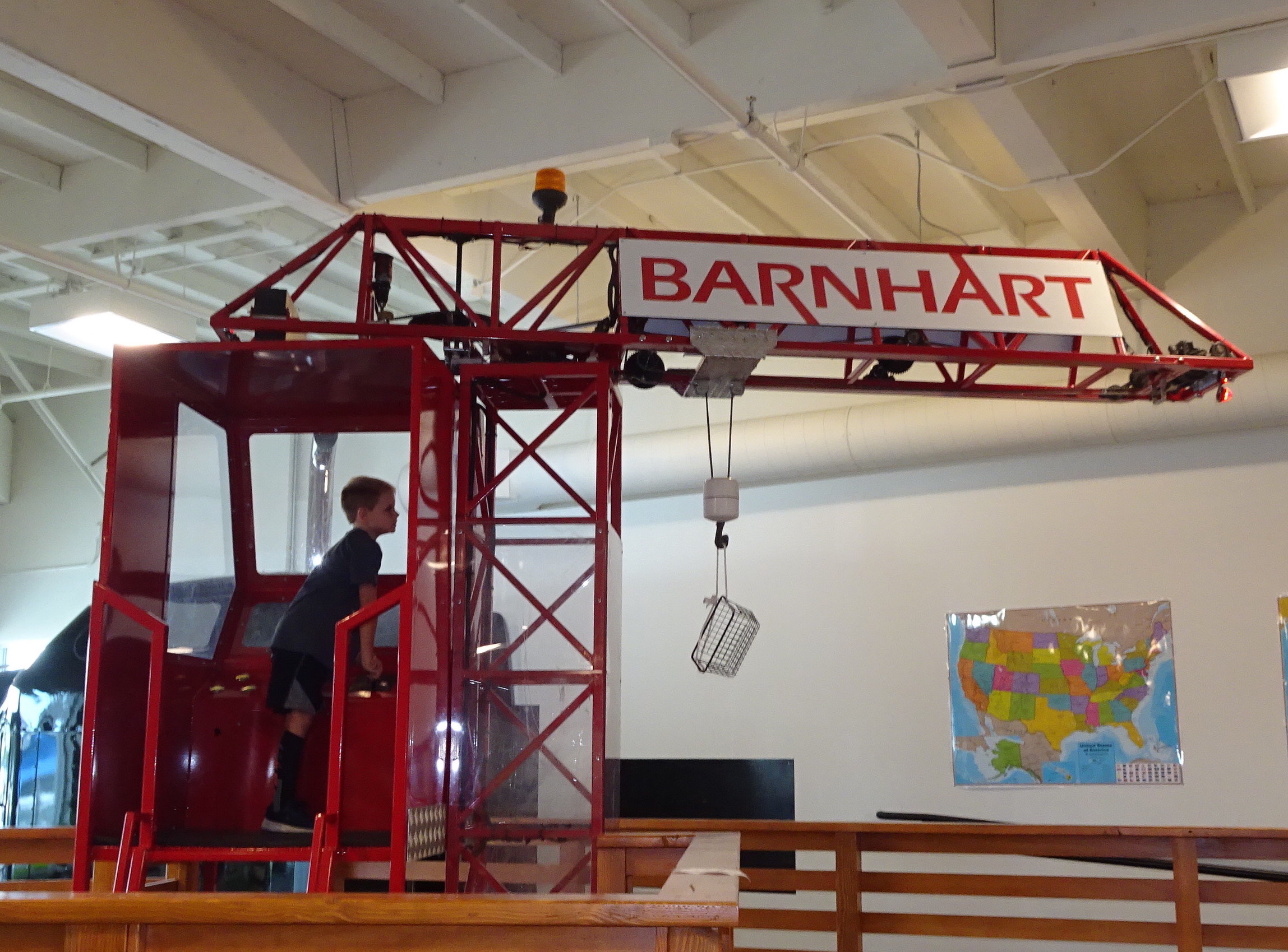 When the Children’s Museum moved to its new location in March, so did the newly refurbished crane, which continues to be a draw for the kids. Standing 10’ tall with a 9’ foot long boom, the crane operates like a regular crane in that trollies in and out and the boom swings left and right. Its small cab has room for two children who can operate two control arms and practice their crane skills, lifting and lowering a load.