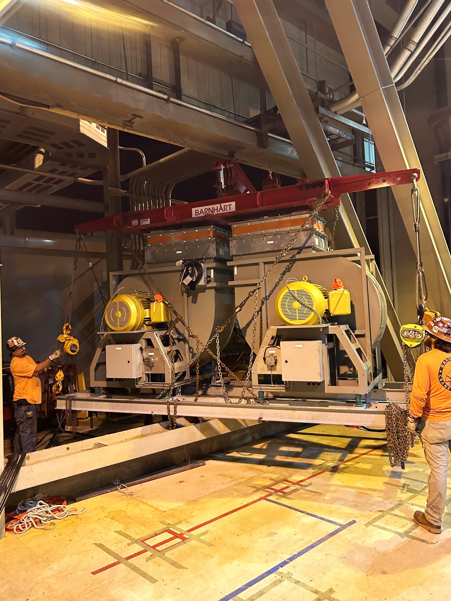 Barnhart was tasked with the complex removal and replacement of an isophase fan at a power plant. The existing fan had to be disassembled into four sections with unknown centers of gravity, while the replacement came in three sections with significantly offset centers. Innovation was critical to the project’s success.