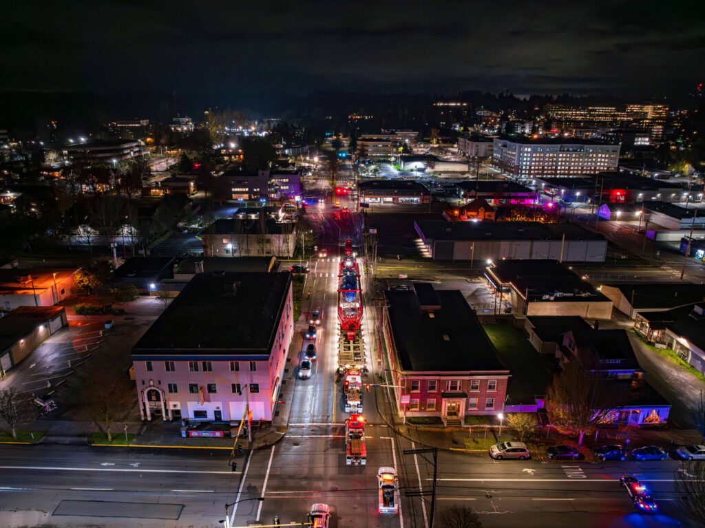 Working closely with local, state, and county agencies, the team mapped a 45-mile route through the I-5 Corridor. Despite initial concerns at the Port of Olympia, Barnhart’s Los Angeles team developed a unique solution—backing the trailer 1.5 miles, removing one tree, and navigating a residential area to reach I-5.