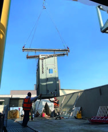 A total of six sections had to be installed into the mechanical room using Barnhart’s Bear Paw link and spreader bars. The work was directly above an operating room and had to be completed on a Sunday, while it was closed.