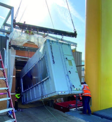 An air handling unit installation at a hospital in Seattle was a multi-team effort between Barnhart’s Mount Vernon and Kent branches in Washington. The crew first used their 155-ton Liebherr crane to lift the sections to the roof.