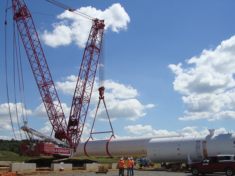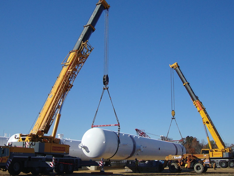 Finally, each tank was set onto the foundations with the appropriate cranes. We optimized value by negotiating pricing on third-party equipment rental, analyzing feasibility of different lift methods, using local labor and equipment as much as possible, mobilizing on day of lifts to minimize living expenses and using local branch trucking where feasible.