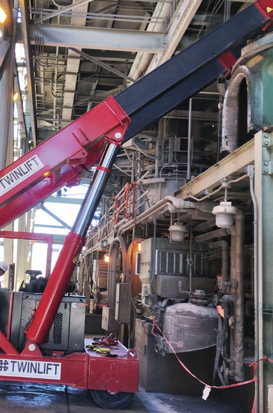 The job required navigating the lift through structural beam obstructions and traveling with the bowl mill to an onsite location where it was set on stands. The bowl mill was replaced once repairs of the lower unit were complete.