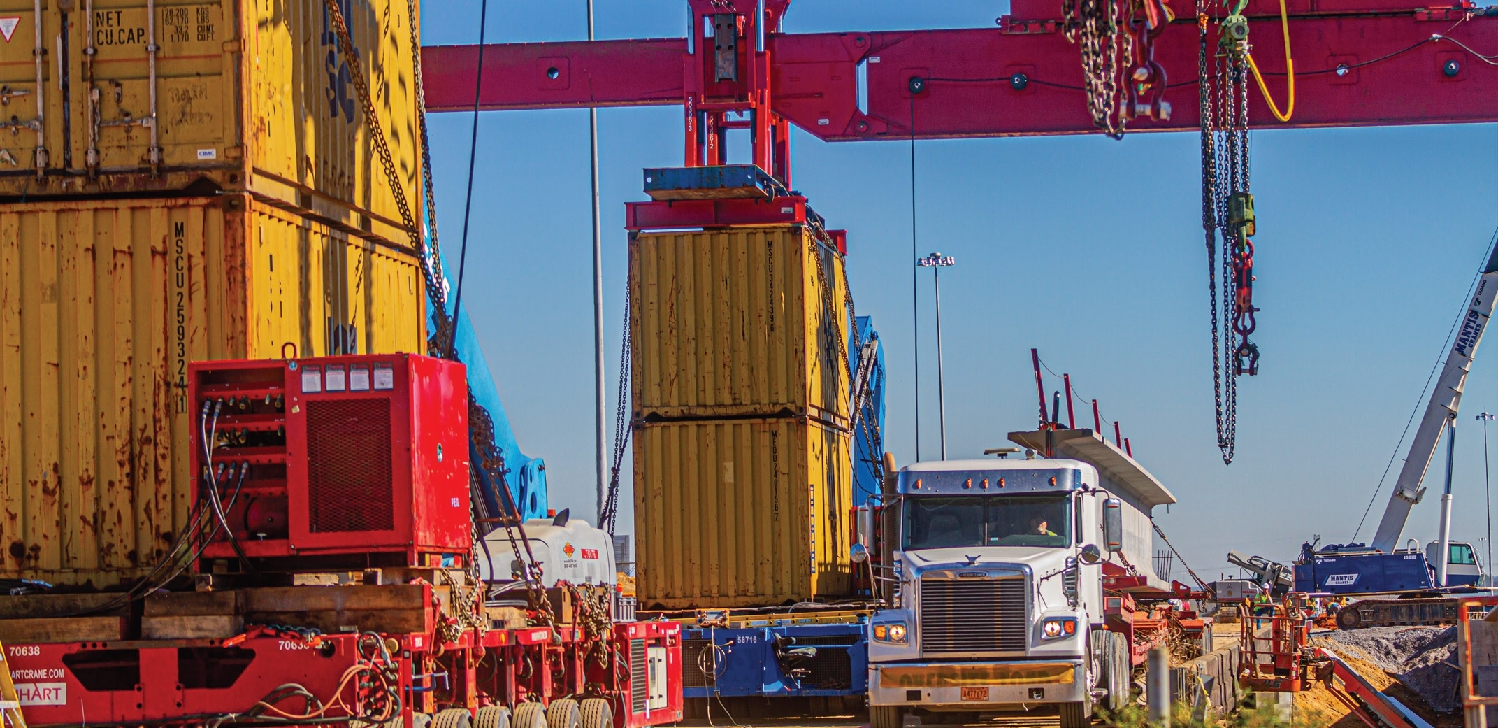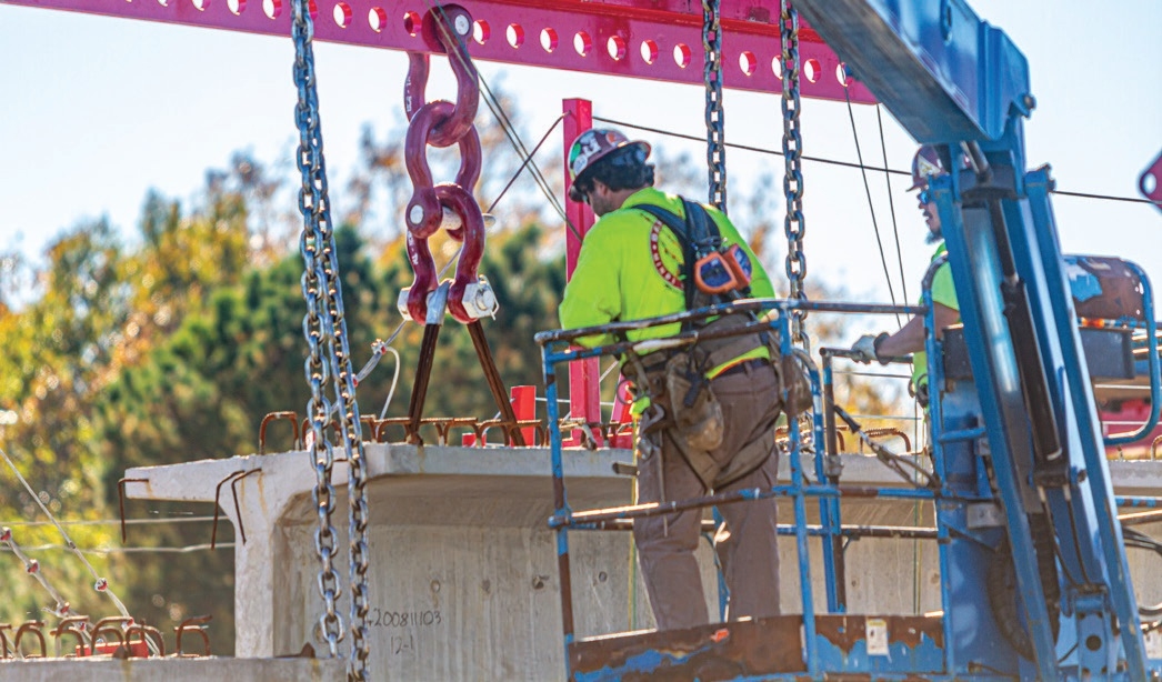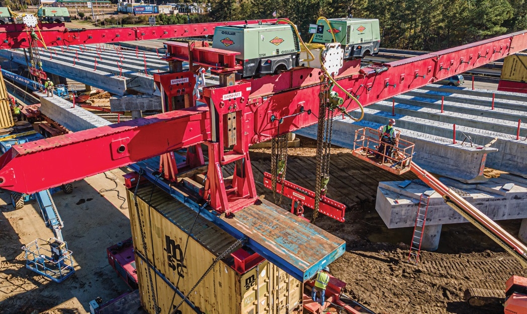 Barnhart used a 1,000 Ton Slide System to safely control the lateral shift of the girders and air hoists to compensate for various placement heights.