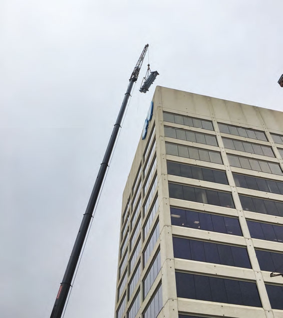 Barnhart was hired to install a 15,679 lb. chiller through the top of an 11-story building. One challenge was that the team had to use a public street to get the proper setup for the crane. That required blocking off several blocks in downtown Little Rock to reduce traffic.