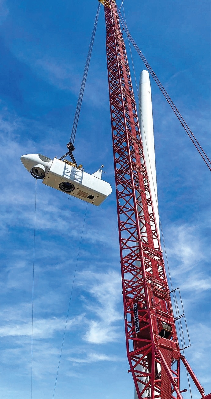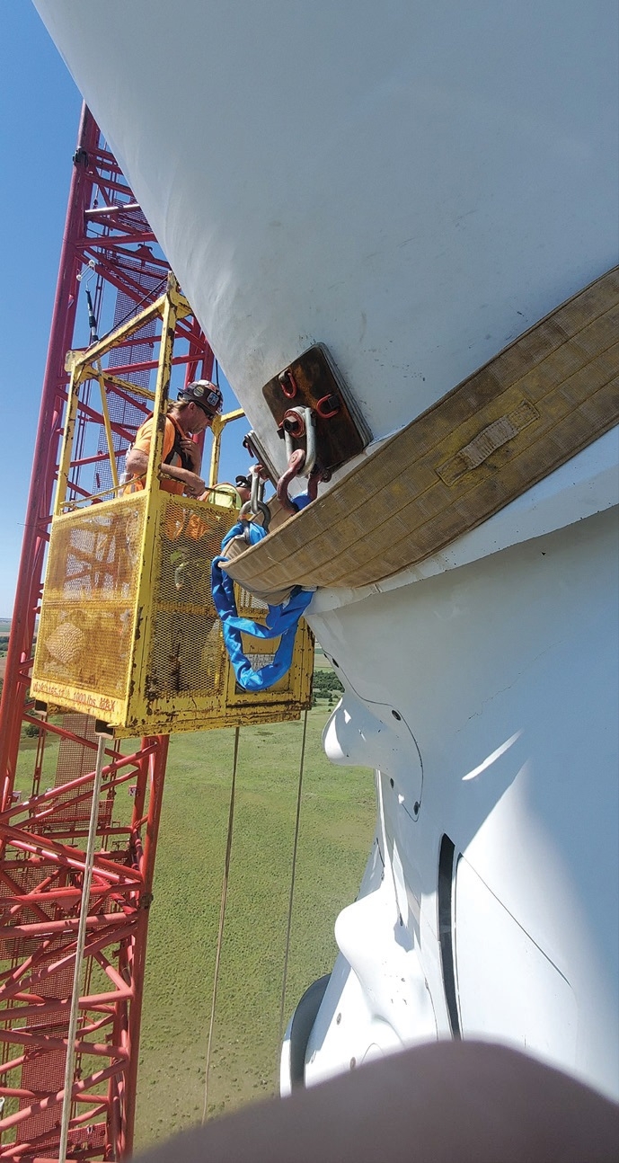 Barnhart was hired to do 19 turbine repowers at a wind farm in Kansas. One turbine rotor was problematic because it had seized in a position that would not allow for a standard rotor removal, as the tail blade was not in the six o’clock position.