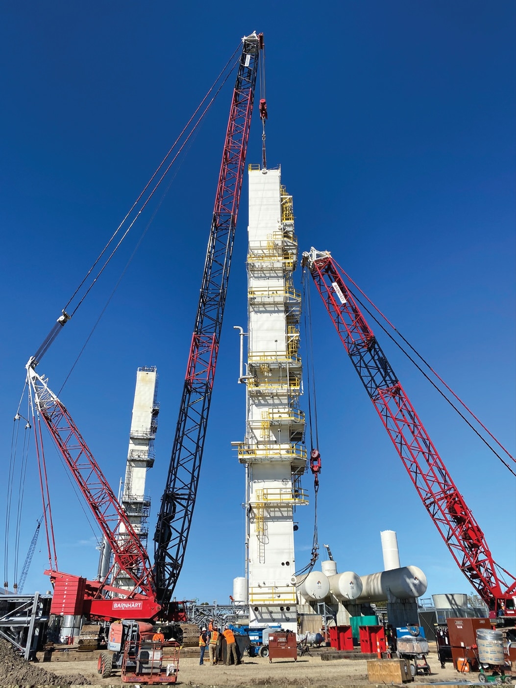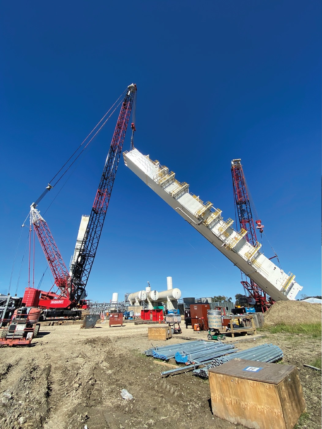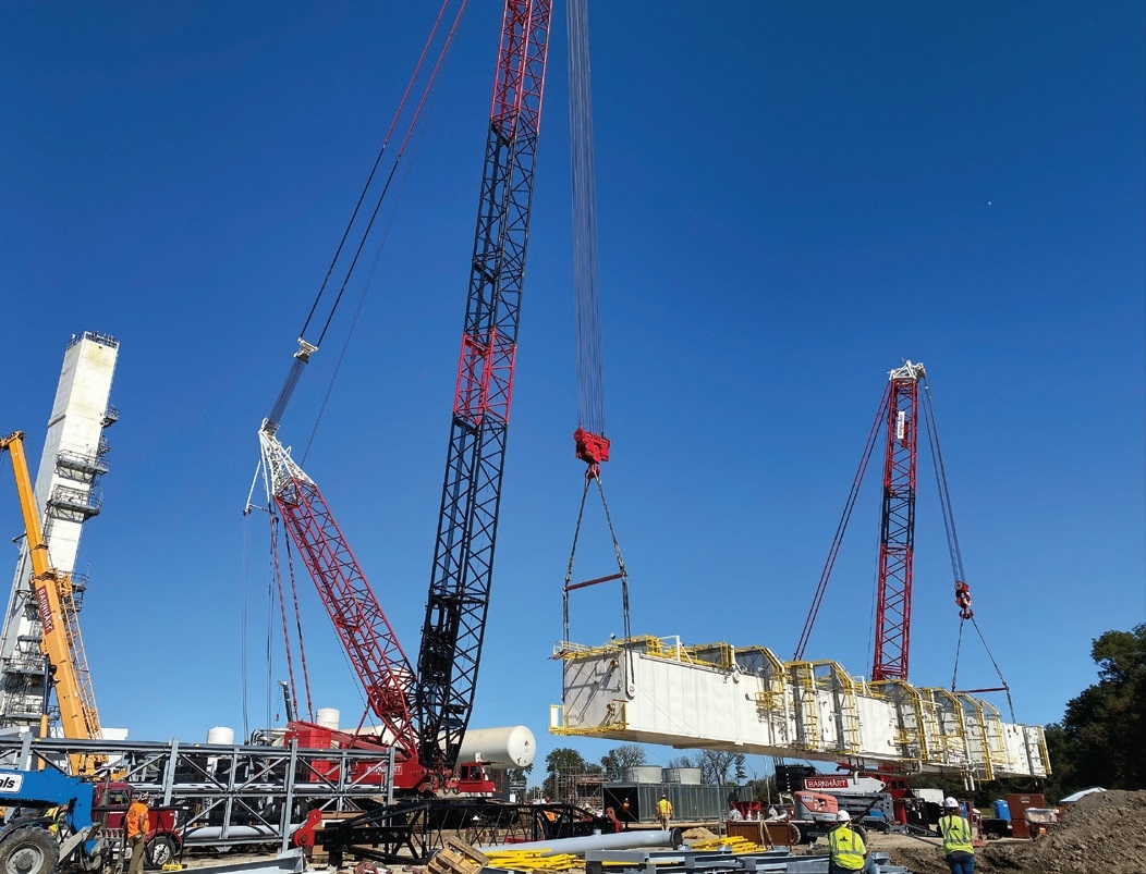 Preplanning was key in this project to set eight components at a chemical plant in Arkansas, which were added while the plant was in operation. Limited working space required the relocation of several components in order for the cranes to fit in the set location.