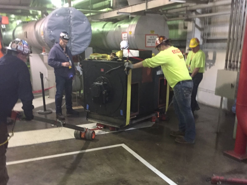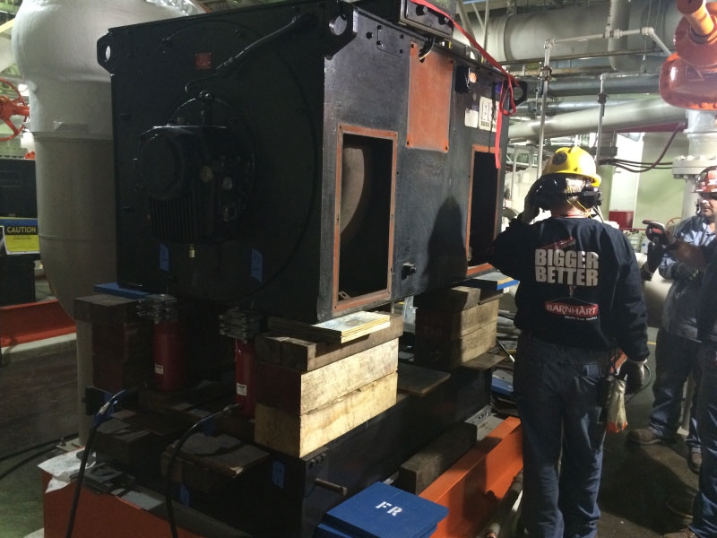 Challenges Although the motor was not a large component by Barnhart's rigging standards, the 79'' long x 48'' wide x 42'' tall 9,000 lbs motor did present multiple rigging challenges.