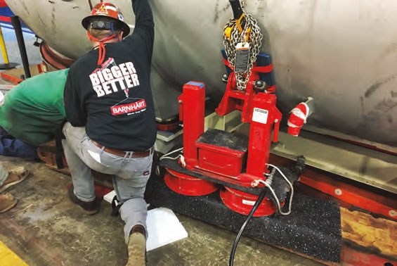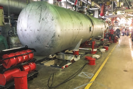 Barnhart was hired to remove and replace two feedwater heaters at a nuclear plant in Michigan. The team engineered a travel path solution using powered saddle rollers and over under beams that allowed for multiple turns on the removal and installation paths.