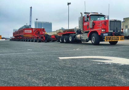 Barnhart loaded the generators on the GS-800 for the 20-mile long trip to the power substation. The haul route went through city and county streets, requiring permitting from multiple agencies. The weight of the transformer required the use of belly dollies on the GS-800. This increased the overall height during transport and required bucket trucks to accompany the move.