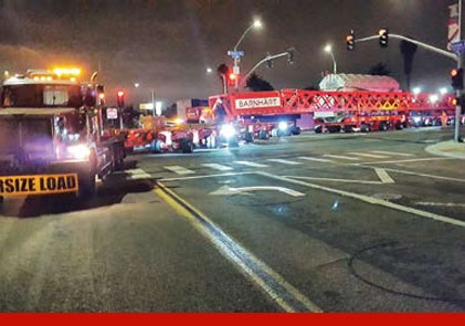 Even though it was only a 20-mile trek, it took a full night for the haul. In addition to bucket trucks, the trip also required private escorts, inspectors, traffic control and California Highway Patrol escorts.