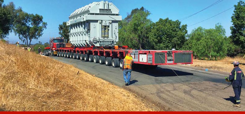 Barnhart received four generators and one transformer from ship's hook at the port of San Diego. They were loaded to a Goldhofer with 10-lines of PSTe and transported to a staging area within the port where they were offloaded onto beams and stands.