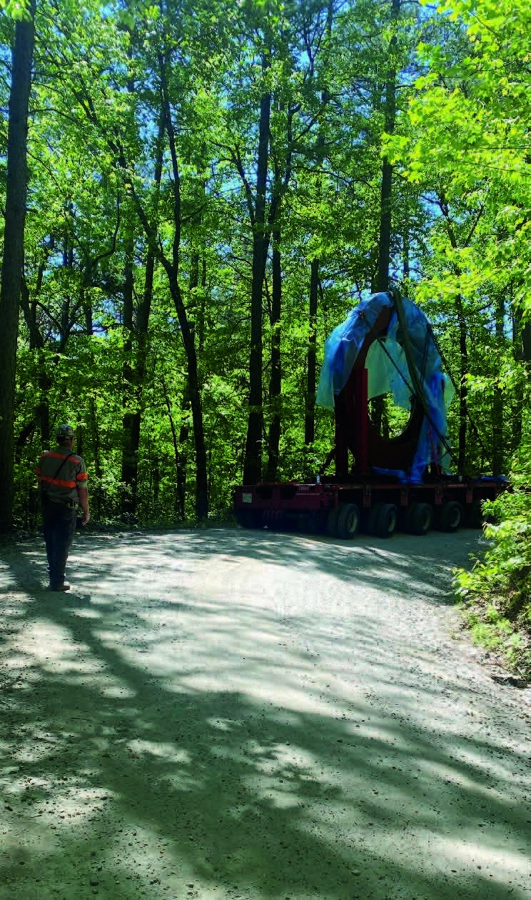 Barnhart’s engineering team designed and fabricated a frame to safely transport the pieces upright.
