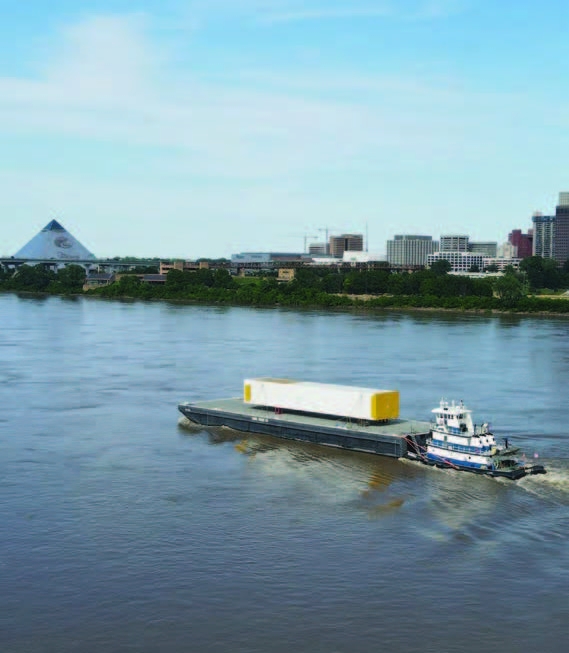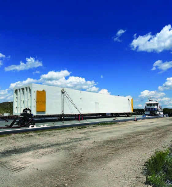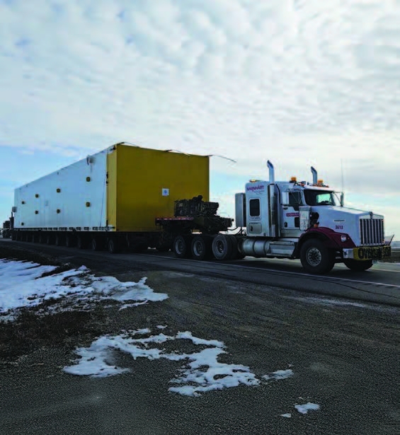 To avoid Frost Laws, construction zones and spring road restrictions, Barnhart proposed a change order to barge the largest cold box up the Mississippi River to Minneapolis. This cut 1,600 miles of over-the-road transit from the trip. The small boxes were hauled 3,450 miles directly from Houston to Edmonton on Goldhofer trailers.