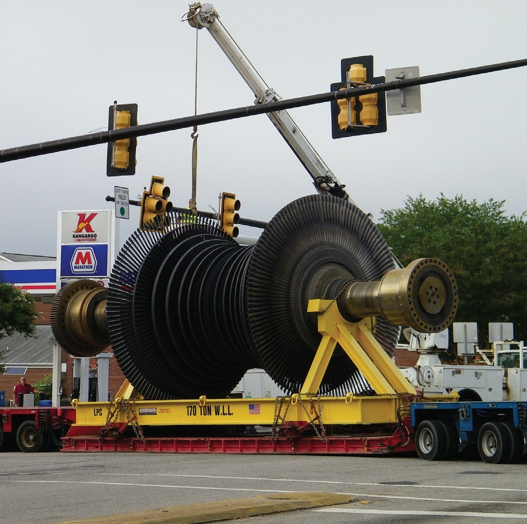 The rotors were hauled approximately 15 miles to a utility-approved scrap and recycling facility just across the state line in North Carolina. They were then offloaded via slide system and removed from the rotor stand with 500-ton one-shot gantries.