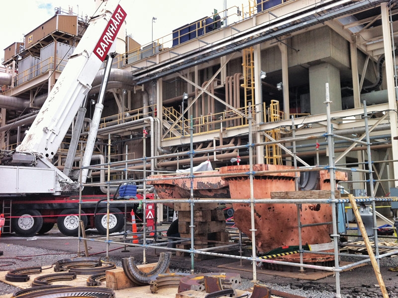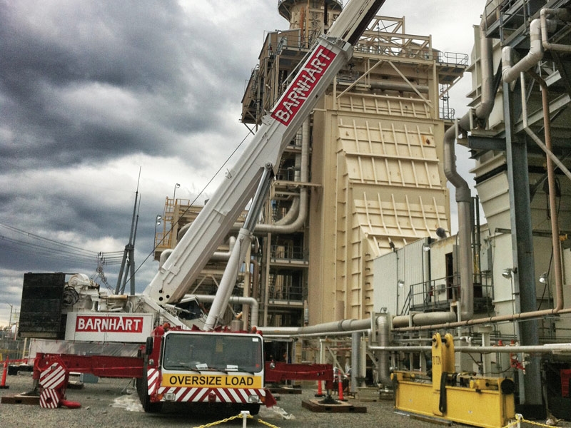 When the customer experienced a last minute problem with one of the gas turbine's rotors, Barnhart was tasked with an additional scope of work to leave one 500-ton crane onsite in position until the rotor could return from the repair facility.