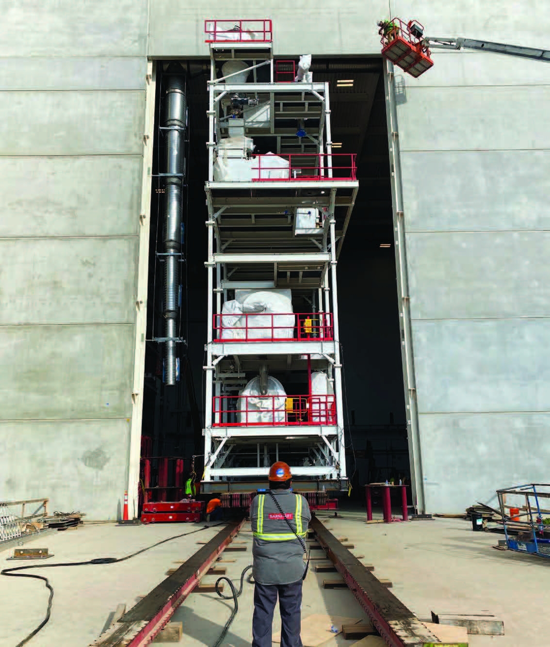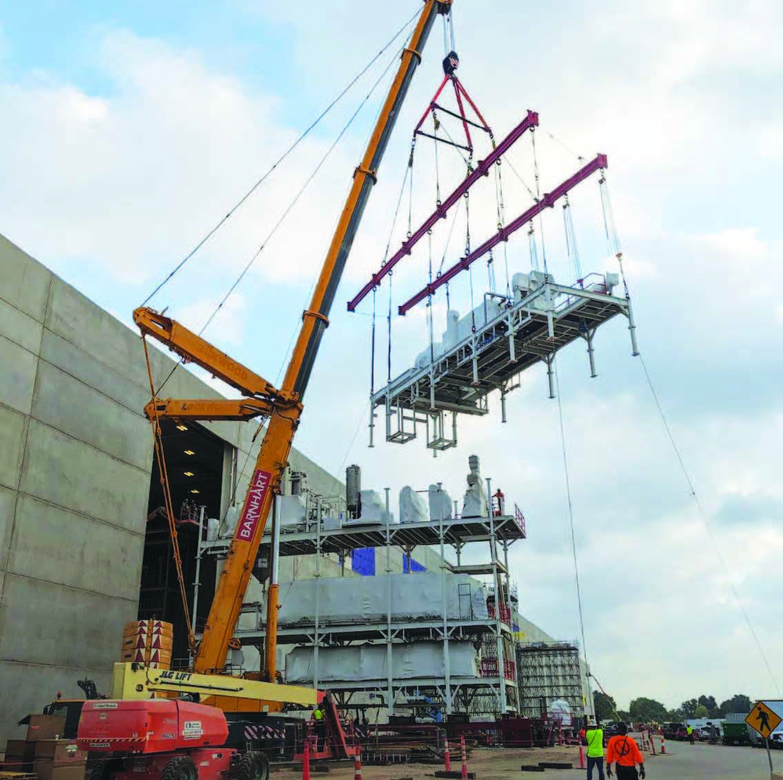 The team utilized pull-up gantry jacks to lift the modules inside and then reconfigured them on powered gantry bases to transport them to their foundations. The project was completed within the allotted four weeks with zero incidents. It was awarded an SC&RA Rigging Job of the Year $750,000–$2 Million.