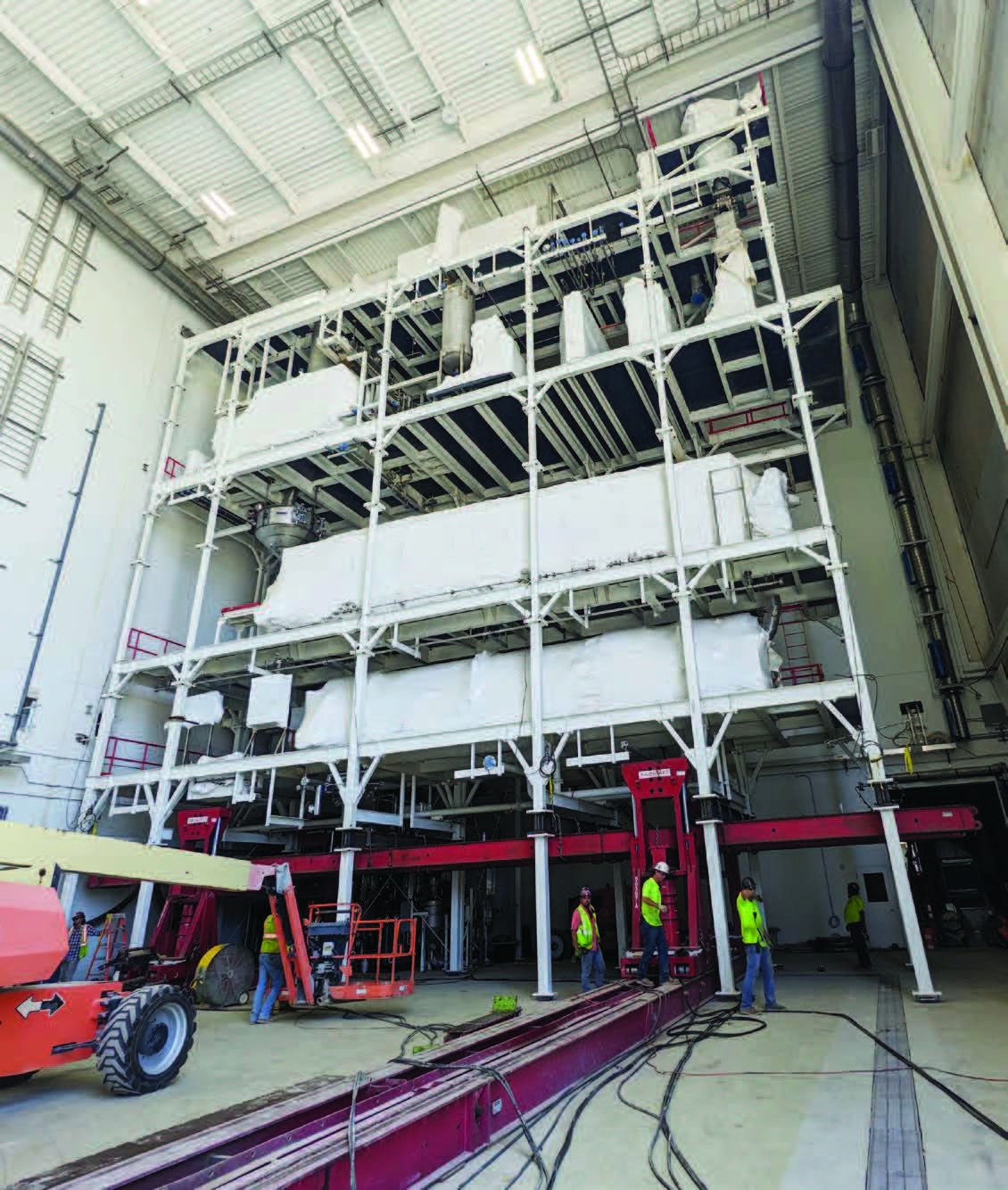Each stack measured 60' high x 60' long and weighed 480,000 pounds. Barnhart used a customized slide system to move the stacks of modules into the building.