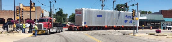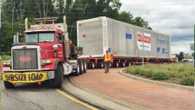 Transportation of the detectors began once the permits were approved by the Indiana and Illinois DOT. The fragility of the cargo required taking several measures. The detectors had to be moved on a Goldhofer to limit the amount of deflection and required precise shimming when loaded. They also needed to be continuously supported during the transport, while traveling at reduced speeds.
