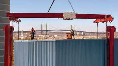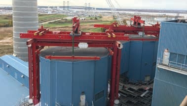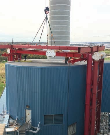 Another challenge was the need to support each scrubber at multiple attachment points. In total, the crew connected to 12 radial lift points around the circumference of each scrubber. This was accomplished using slide beams with custom-fabricated offset links. Once the MLTs were erected, the plant safely began repairs by fitting and welding cladding sheets. The MLT system also allowed the plant to operate the units while completing repairs, greatly reducing downtime. After all repairs were completed, Barnhart quickly and safely demobilized.