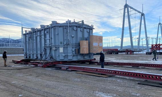 At the site, the transformer was offloaded onto a 500-ton slide system to be rough-set on the pad. Despite temperatures that were single-digit during the process, the job finished ahead of schedule.