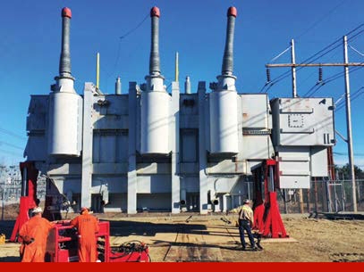 Once lifted, Barnhart used their 16' slide system to jack and slide the old transformer to a staging area for onsite demolition. Barnhart crews slid the 425-ton piece over 125' to its staging area.