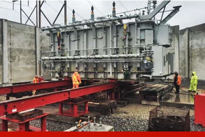 The spare transformer, which weighed 560,000 lbs. was readied for transport using the 16" slide.